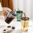 Features: - designed for drinking: glass coffee mug is made of high quality glass. Comes with a reusable glass straw a multi-used leak proof lid. The lid is leak proof as there is a little stopper to stop up the hole. The mug with or without straw and lid is multipurpose ,as a coffee mug , milk cup, water mug ,tea cup , juice ,smoothies or any other beverages cup. - large capacity & perfect for office: 14oz /435ml capacity, cup top size is 3.78", bottom edge is 2.83", height is 4.8" . Glass tumbler with lid and straw makes comfortable and convenient to use. Protective sleeve is good for holding the hot coffee or drinks. - heat and cold resistant: withstand temperature is -20 to 120 , so you can pour boiling water or ice water into this cup safely directly. - easy to clean: wide cup mouth, easy to hand wash for durable use. Note: - glass material is more fragile than plastic or stainless steel, so it is inevitable that the package is damaged during the transportation, even with sponge package - if you receive broken one, please contact us without any hesitated.