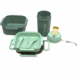 Compact, stylish kitchenware set in mint green—perfect for travel, camping, or on-the-go meals. Includes containers, utensils, and a portable coffee cup for effortless outdoor elegance.