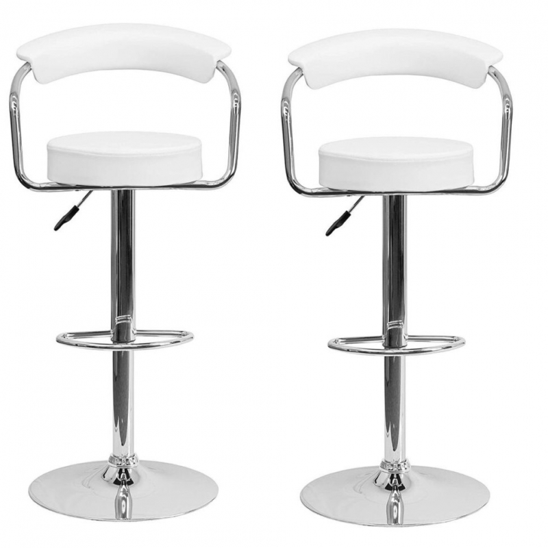 Bar / kitchen Counter Stools with Armrests – Set of 2 – White Colour
