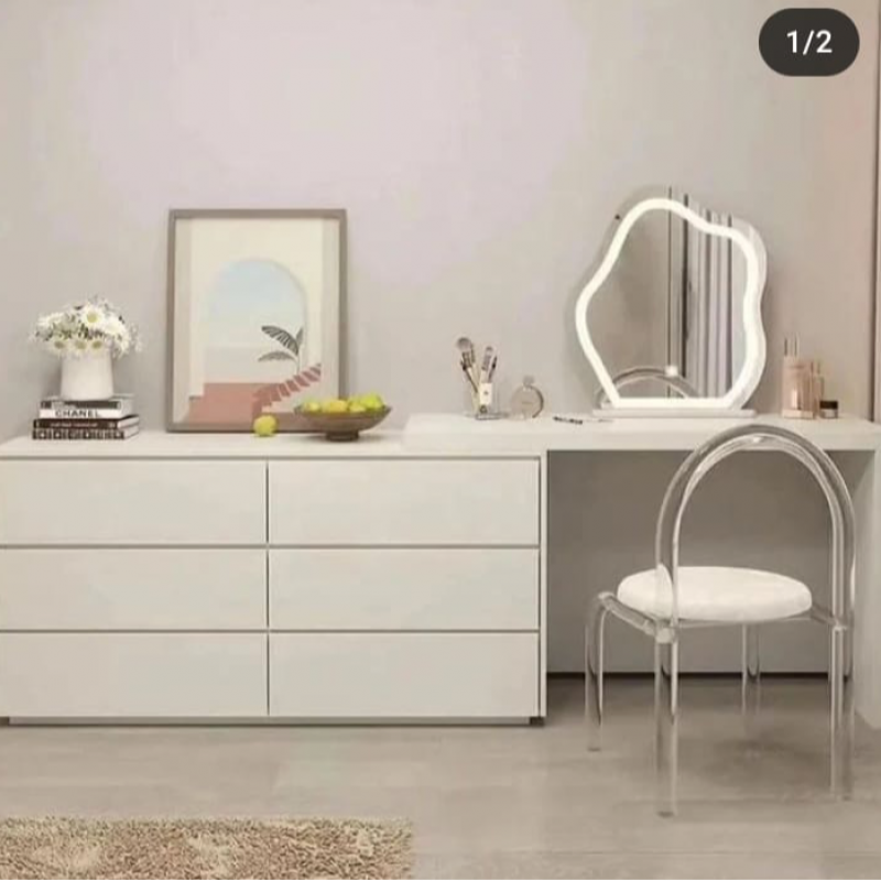 With its colossal dimensions of 120cm by 120cm, the 3CT Dressing Table Set boasts storage options that are nothing short of magnificent. Say goodbye to cluttered countertops and messy drawers. This dressing table provides ample space for all your beauty essentials, from perfumes and cosmetics to skincare products and hair accessories.