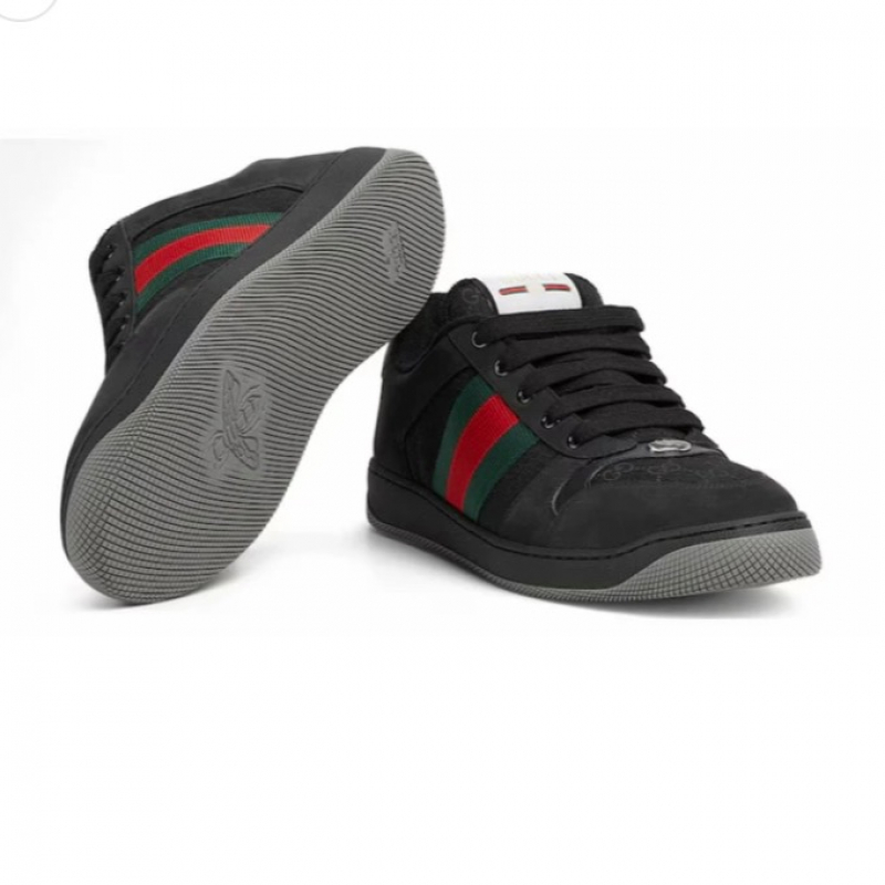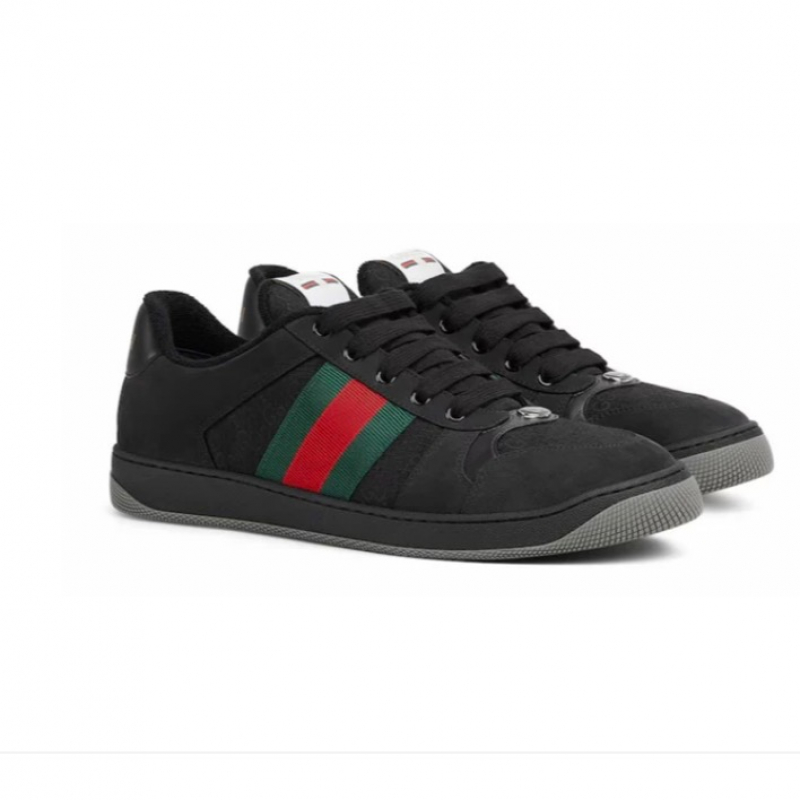 The Gucci GG Screener Sneaker blends vintage athletic style with iconic branding. Featuring the signature GG Supreme canvas, leather trim, and Gucci Web stripe, this low-top sneaker captures retro flair with a luxury edge. Distressed detailing gives it a worn-in, nostalgic look, while a cushioned sole ensures everyday comfort. A standout piece for those who value bold design and timeless heritage.
