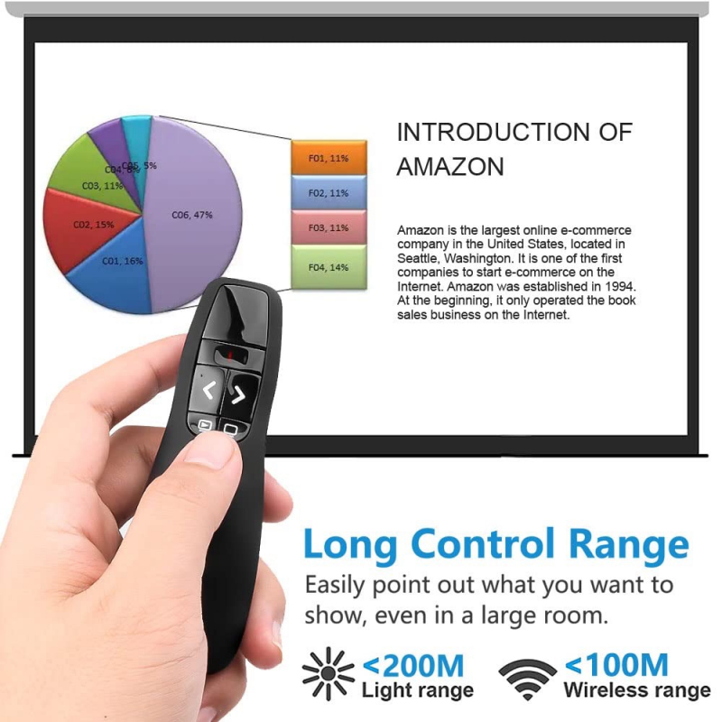 【Bright Red Light & Long Distance Control】This remote clicker for presentations has bright red light that is easy to see against most backgrounds(Not recommended for TV/LED/LCD screen). The ppt clicker control range: 326FT/100M, Red light range: 656FT/200M. NOTE: slideshow clicker is NOT bluetooth presenter.