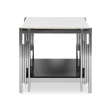 The Bali Side Table offers a compact yet versatile size that fits perfectly in any living space. Measuring 55 centimeters in length, and 55 centimeters in width, and standing at a height of 55 centimeters, the Bali Side Table offers a compact yet versatile size. Its sleek design and clean lines create a modern aesthetic that complements various interior styles. The Bali Side Table boasts a two-tier design, adding style and functionality. The top tier features a decorative faux white marble tabletop, creating a luxurious and timeless look. The dark-tempered glass bottom shelf adds a contemporary touch and provides additional storage or display space.
