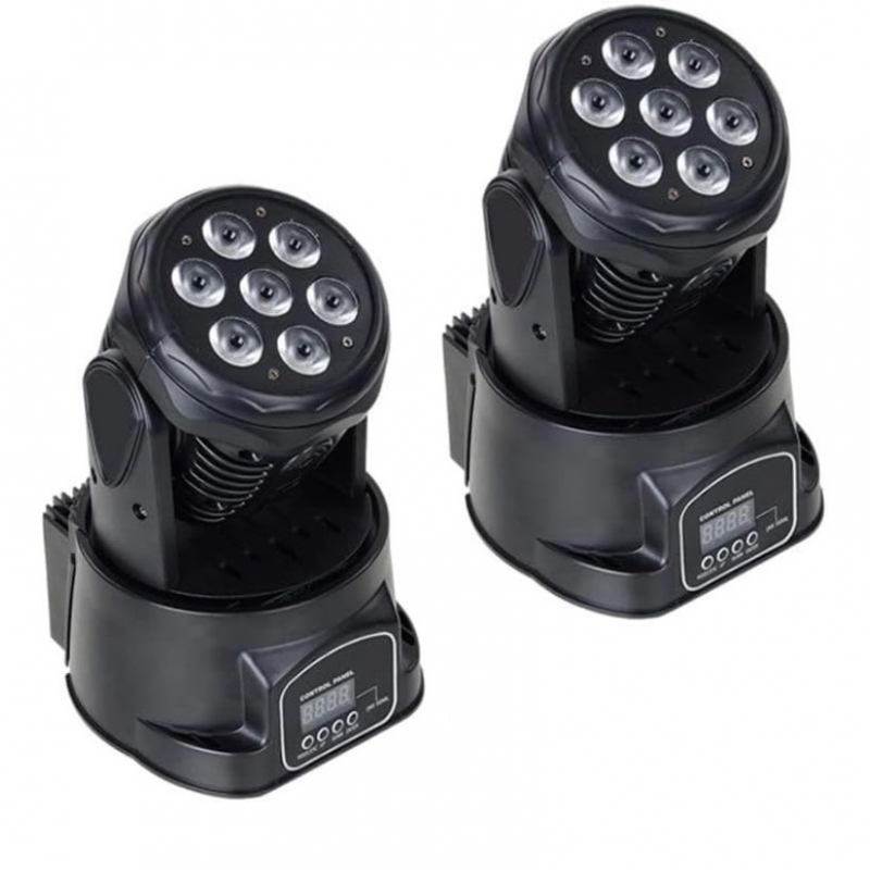 This Set of 2 Mini LED Moving Head Lights delivers powerful lighting in a compact design — perfect for DJs, parties, weddings, and home setups. Each light features high-brightness RGB LEDs, smooth 360° rotation, and multiple modes including DMX control, sound activation, strobe, and auto mode.